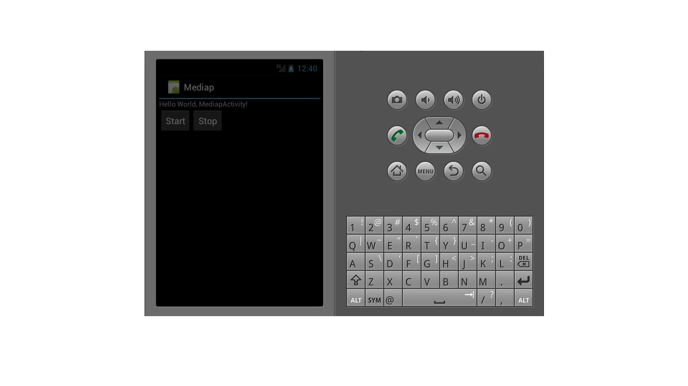 Here MediaPlayer Object create and give the path of .mp3 file in create() method and use stop() and start() method for start and stop music .